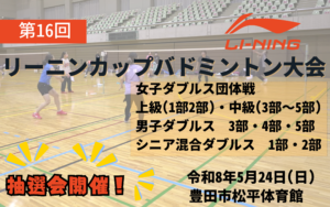 第16回リーニンカップバドミントン大会団体戦inホワイトヒルズ(男女別団体戦・シニア混合団体戦)New!!